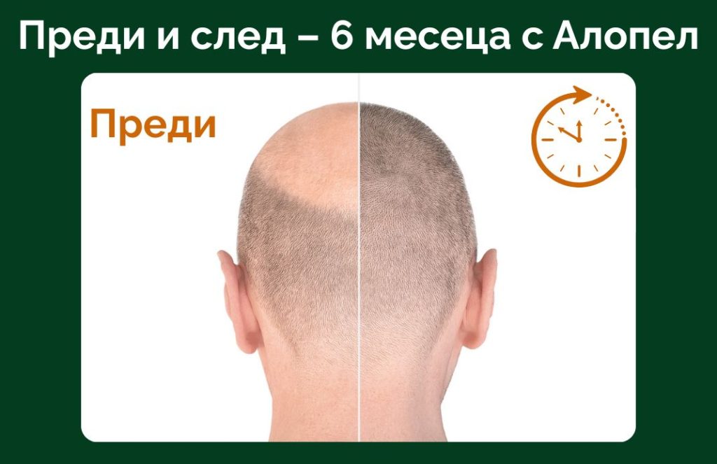 Купих си алопел по препоръка. Имам прогресивно отдръпваща се линия на челото и оредяване отзад около темето. Ползвам продуктите всеки ден от около 4 седмици. Косата ми изглежда по-плътна, но все още не мисля, че има нов растеж. Ще трябва да дам поне още няколко месеца, за да видя дали ще помогнат и с растежа.