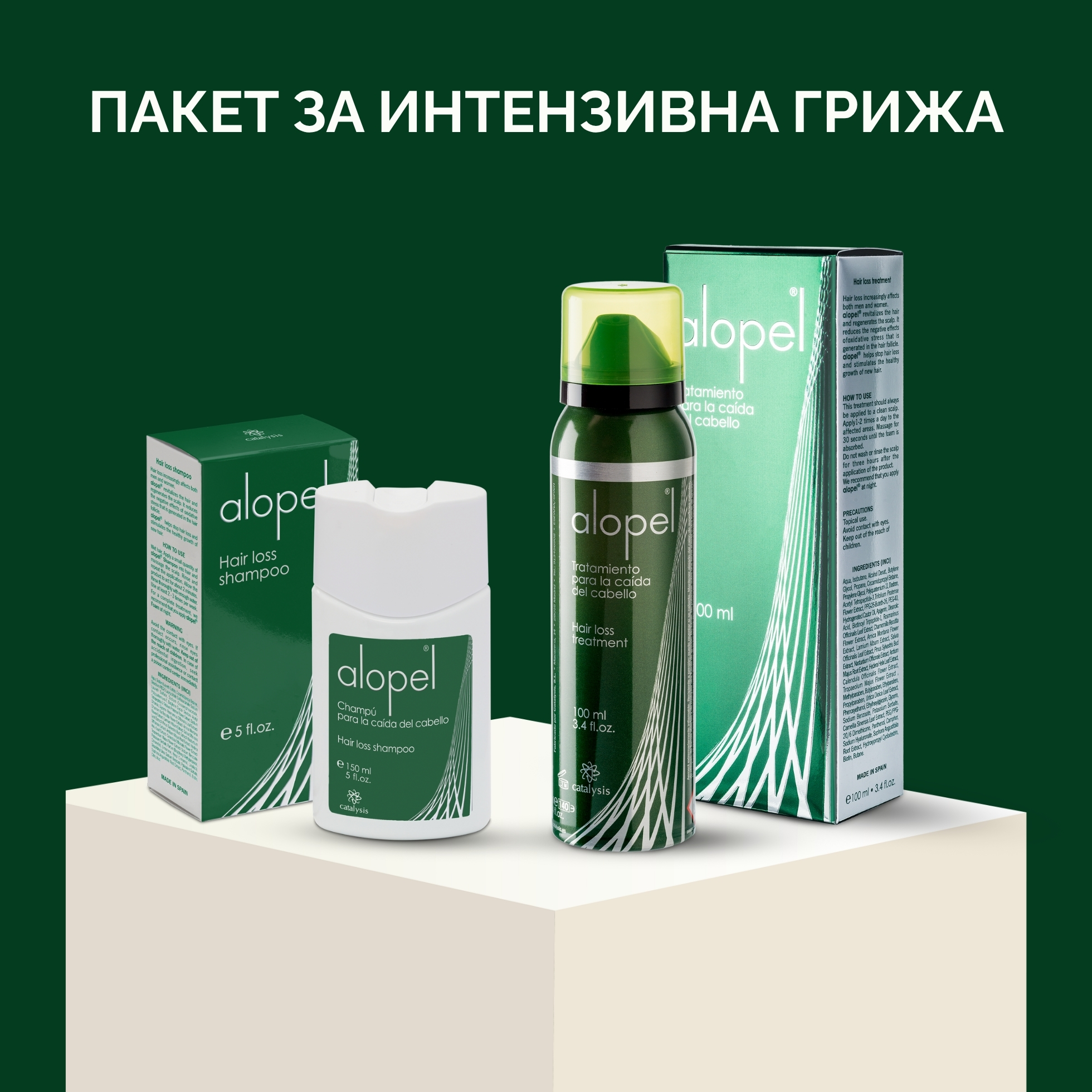Много добър комплект – шампоанът и пяната ми помогнаха да започне отново растежът на косата. Важно е да се ползват редовно и да не се пропускат нанасянията между измиванията. Отне два месеца, но вече виждам разлика. Аз съм на 42 и имам здравословно състояние, което изтънява косата ми, но с Алопел определено има подобрение. А и след измиване косата ми е толкова приятна на допир.